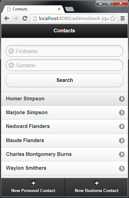 Of course Metawidget can take this much, much further. To see how, the best place to start is the JavaScript tutorial. There's also a complete Address Book sample application included in the examples pack.